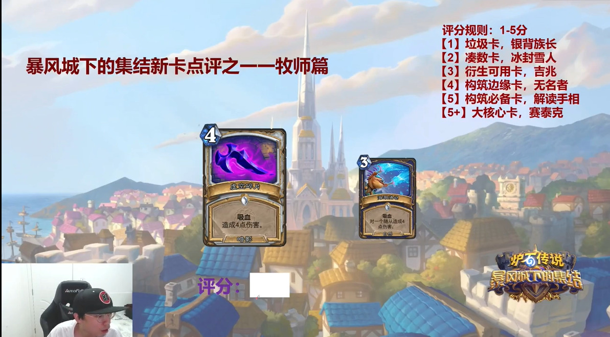 这张卡我第一眼看到她不知道设计出来是干嘛,狂野的58牧应该也不会带这种牌的,你有子嗣对面怎么都死了。今天主要聊标准,在标准环境里意义不明,但我看到这张牌感觉后续版本还是继续会出进攻牧师的体系,这个版本应该塞不下新体系,这卡实在是聊不动,打个一分吧。