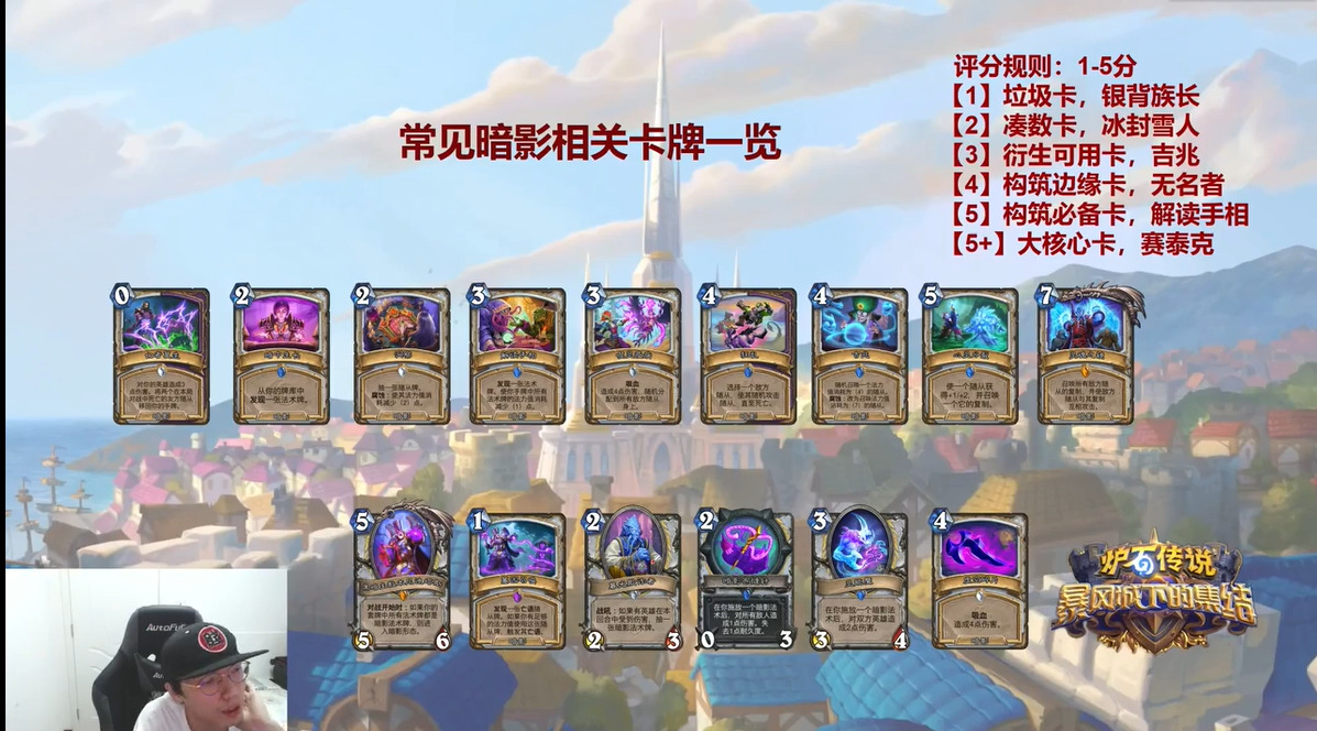 老中医先总结了一下目前版本里常见的进构筑的暗影体系的牌,根据他们的特性老中医将他们分为了进攻性的牌和防守性的牌