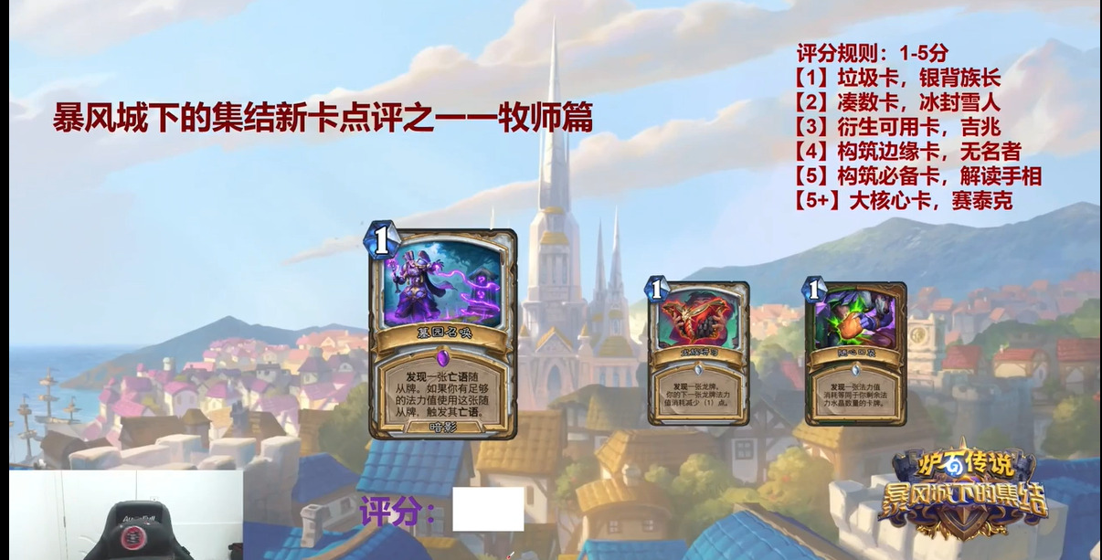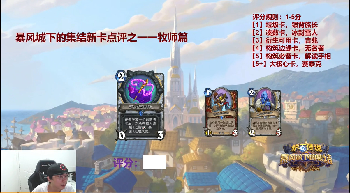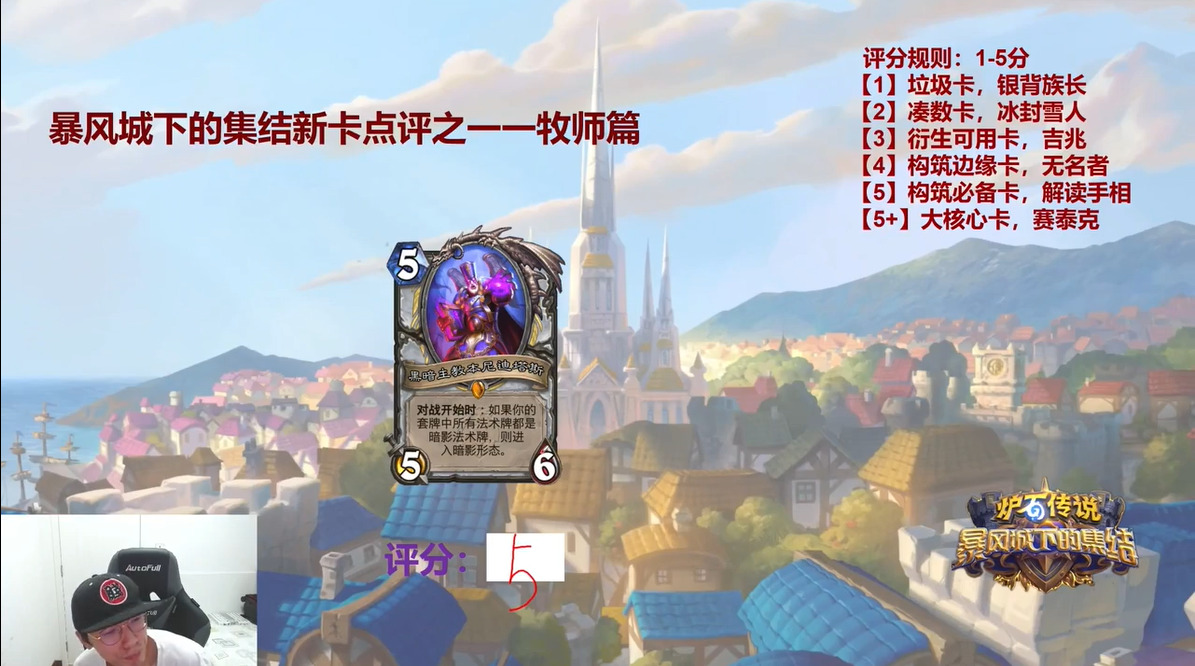 这张牌老中医给五分,他觉得不管怎么样这张牌一定是暗牧构筑里的核心,如果暗牧不强不是他的问题而是这个体系的牌或者本身思路就不强的问题,他本身的效果是值得作为核心利用的。如果是目前这个情况,对暗牧的理解应该是中速偏慢了。这么看这个思路的伤害还是不够,对比其他常规的快攻或者抢血卡组,暗牧好像还是打不死人。所有我觉得未来暗牧可能还是会走资源消耗或者攒一波手牌打一波很高的爆发这样的思路。暗牧应该还要再等一等,现在的标准环境想在主流构筑里争的一席之地很难,只能说未来可期吧,我还是很期待暗牧的。