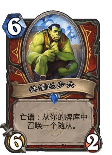 怯懦的步兵算是很明显的大哥战补强卡,有了它就意味着标准大哥战有一定的操作空间,可以打出类似狂野的大哥战构筑,当然目前面临的还是快攻糊脸的主要问题,但如果真的可以苟住说不定会有不错的发挥。