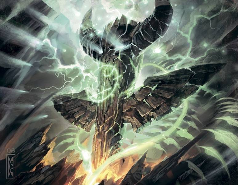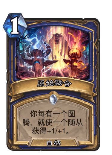图腾巨怪:对阵中速与慢速套牌的超级大杀器,五费准时拍下往往能够起到近乎降智的效果。如果放任其存在的话,图腾映像就可以复制出两个七杠七;只解掉一层,泽蒂摩与原始融合的配合就能直接终结比赛;就算对手清干净了,耗费的资源也往往比我们付出的更多…可以说只要成功使用出去就不会出现被对手赚掉的情况。但这并不是一张应该双持的卡牌,因为图腾巨怪的威胁性有很大一部分是建立在卡牌的配合之上的,而我们并没有那么多的法术力和手牌资源来为这张卡服务;且比起提高上手率带来的收益,这张卡双持可能促使鬼抽的概率上升更加值得去预防,因为正如前文所说,当下的狂野环境两极分化较为严重,虽然图腾巨怪的硬实力也很强,但它毕竟是一张五费卡,在灵活性和泛用度上比起其他一或三费的组件还是要差不少的。