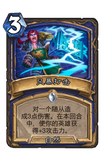 对阵快攻与中速卡组时,前期用一张风暴打击只能做到清除场面,换言之,对手只要还有资源,那场面的主动权就依然在他手里,我们其实是在慢性死亡;而在与慢速的对局中则更不用说…诚然,碎雷和泽蒂摩可以跟这张卡发生化学反应,发挥出巨大的威力,但正如前文所言,奇数萨中下限的保障优先于上限的追求,也许在十局之中的七局碎雷或泽蒂摩会出现,可就算风暴打击每次都稳定上手,有合适的时机去使用的情况可能也不到一局,牺牲九局去成就一局必然是不可行的。在有过牌,对场面需求没那么大的卡组之中风暴打击或许不错,但在奇数萨手里就是饮鸠止渴,死路一条。