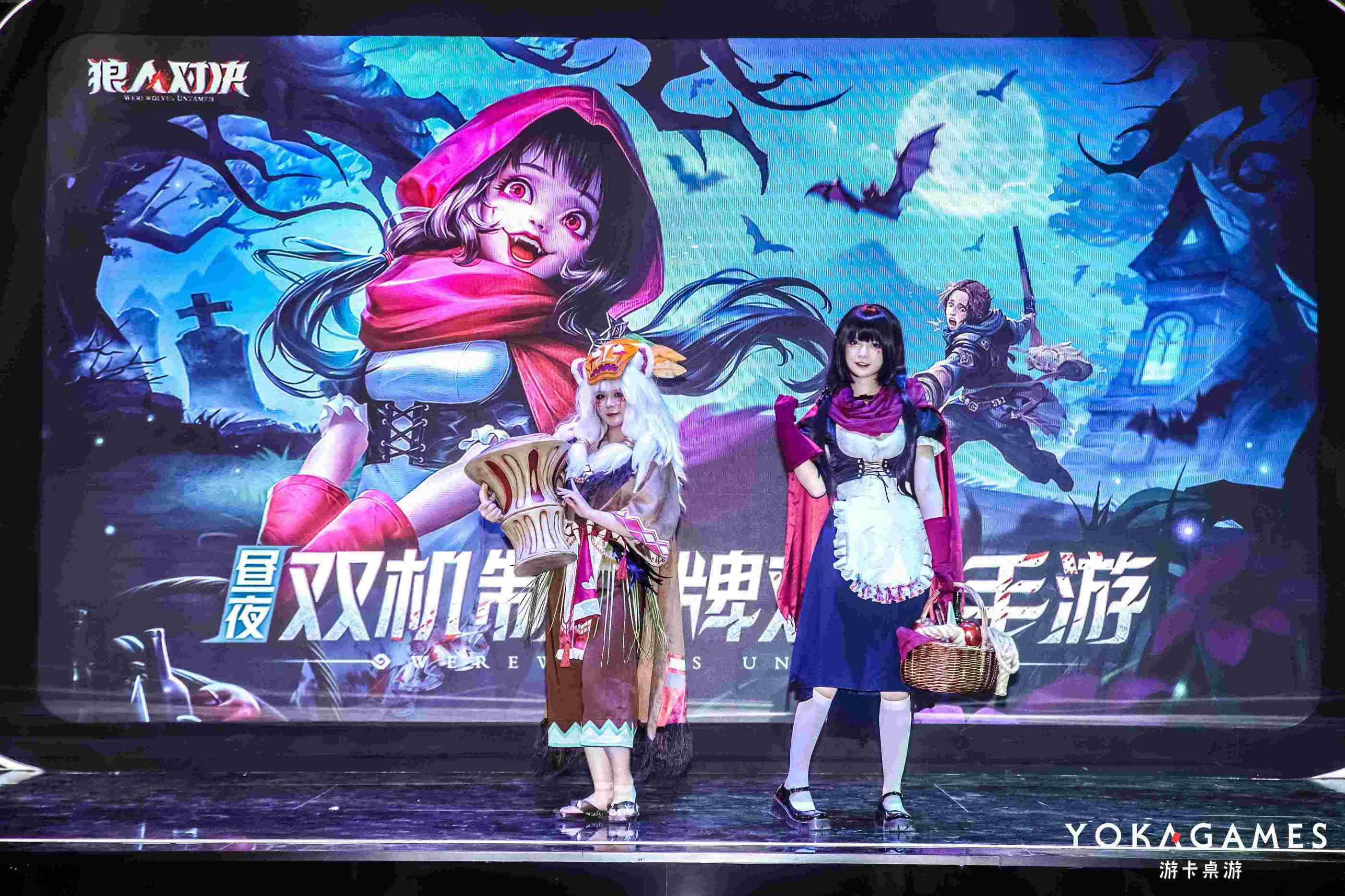 其实,游卡的“比赛”,也很简单,就是在现场用桌游的形式再现了《狼人对决》的核心玩法。现场的《狼人对决》coser“小红帽”和“祭祀女巫”引导玩家体验桌游玩法,既让《狼人对决》的玩家在线下也能享受到游戏的乐趣,也让不熟悉游戏的玩家能够高效地学会游戏的核心玩法。线上与线下相结合,桌游与网游相结合,这就是游卡不同于其他游戏公司的独到之处。