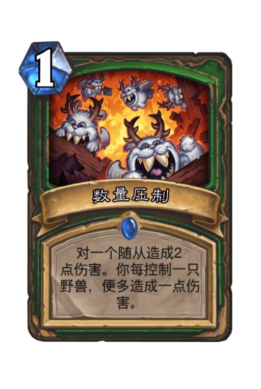 一般。这套牌可能会有半数的情况下是在没有野兽的情况下使用杀戮命令的。相比稳定能提供5点伤害的瞄准射击,杀戮命令不那么好。但目前牌池中,除了瞄准射击外并没有更好的奇数直伤牌了。在套牌完成度提高后,它是可能被替换的。