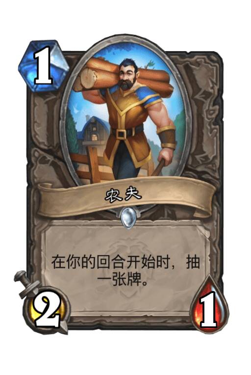 并不算很出色,但是没有其他选择。奇数走A能选择的过牌手段太少了,在现在需要压缩回合数且天梯卡组带的1-2费解场并不多的环境里,农夫好于符文蛋,苦痛侍僧和寒光先知。也就是说,它很可能是在仅排在贪婪的书虫之后的中立过牌手段。但是在对阵有回复和解场能力的卡组时,它仍旧不时一个好选择,或许寒光先知更优。