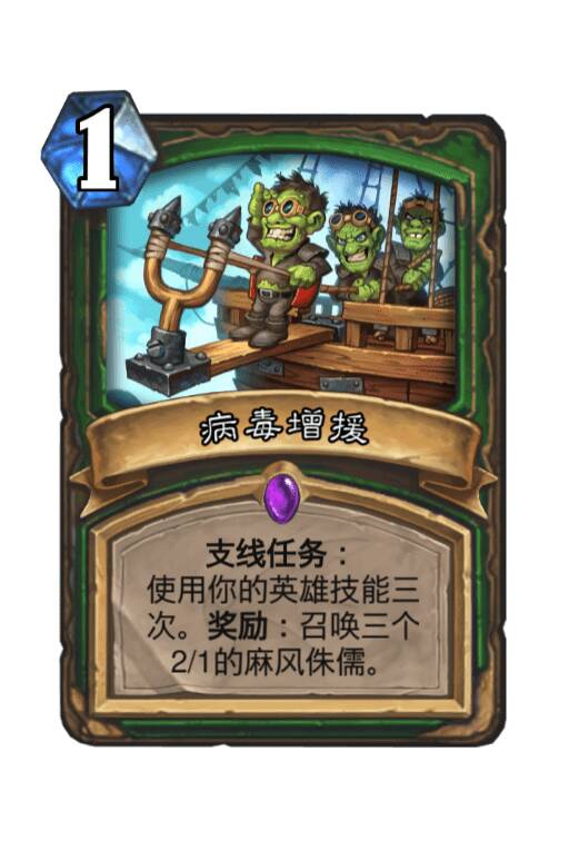 第一张一般,第二张很差。尽管病毒增援会帮术士做任务,但它仍然是可以考虑携带的。它是除了伤害牌和过牌以外,走A猎能携带的最好1费法术之一。在第一张未完成前是无法挂第二张的,所以第二张很差。