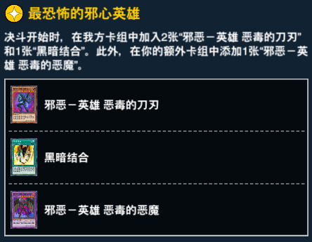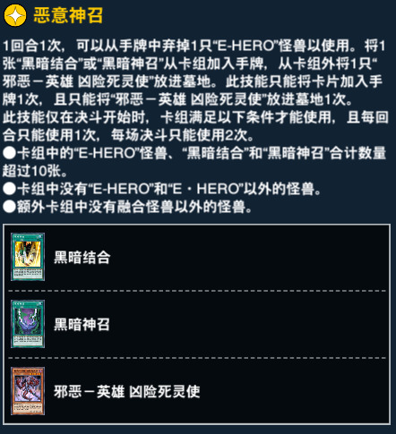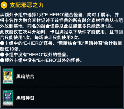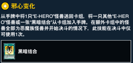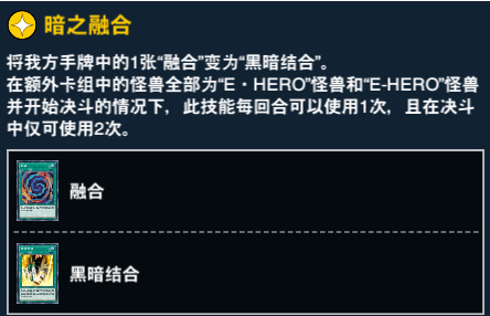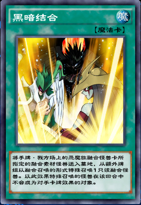 11、23和38级奖励。 黑暗结合可以出任意恶魔族融合怪兽,并且在当回合获得不被取对象的效果。