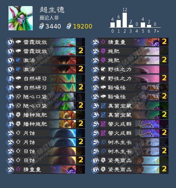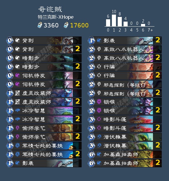 而和半天之后的天梯环境/推特环境比起来,有一个在比赛里带得还很少的新卡组就是奇迹贼。奇迹贼大概在天亮后才传开,而且不能一看就会,只有LP和VK的猛士带了。