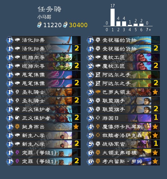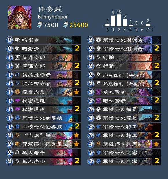 整体而言,这周比赛里任务法和吸血瞎最多,快攻比任务术更横行,这都是新版本上线前半天时的天梯环境和推特环境。这是一个前朝旧剑几乎全退的版本,快攻猎、快攻萨、刀贼的改动算是最小的了,但也都带了新卡,不带新卡的安娜德(和白琴里的信仰贼)已经没有容身之所了。