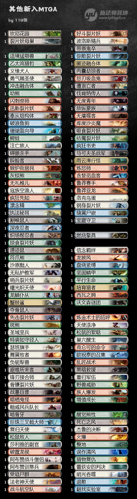 新登录MTGA的卡牌一共一共372张,来源分四种: