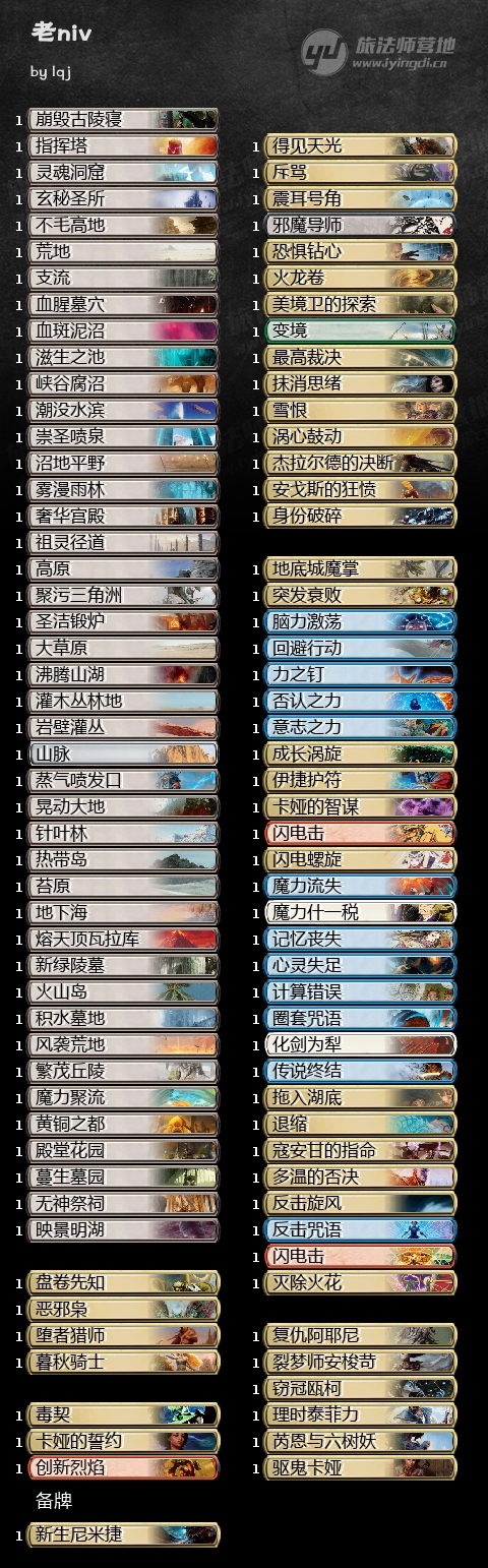 之后我就开始了对他的研究和构组。我选择了每个双色色组最优质的咒语们,带上最顶级的单色反击和去除,最后搭上变境这一点睛之笔,我的第一版新生尼米捷就完成了。