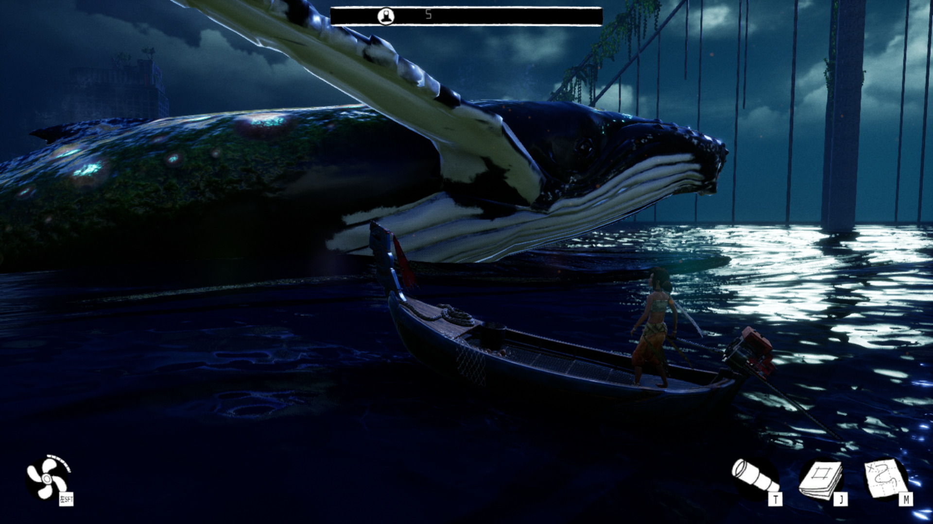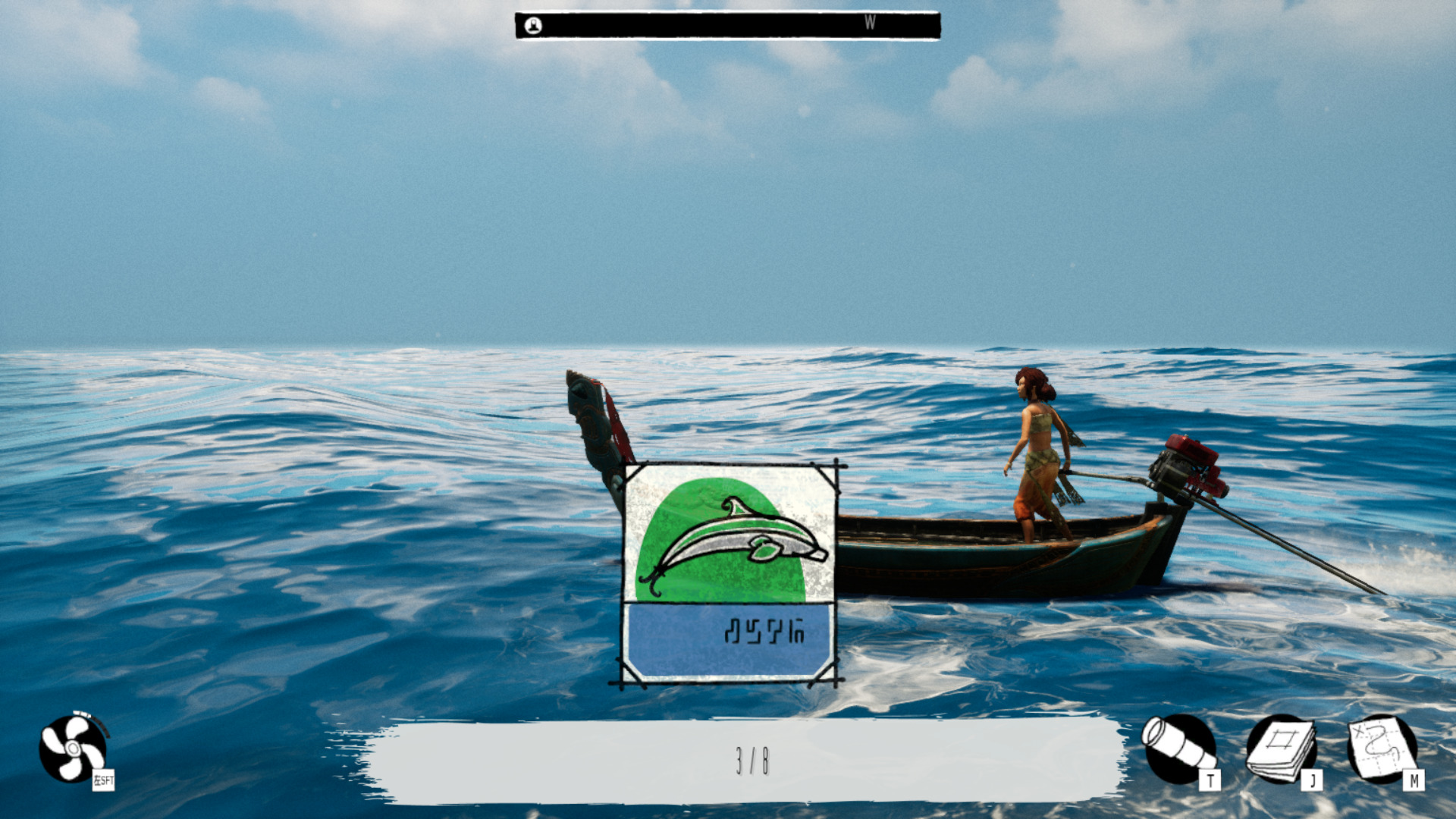 虽然是无边无尽的大海,但毕竟是游戏,就算是沙盒也有自己的尽头,本作有一个巧妙的设定,就是当角色到达尽头时并非是直接有一道空气墙,也并非是让这个寡言的女主说话, 而“婉转”的让这艘小舟自动转向。