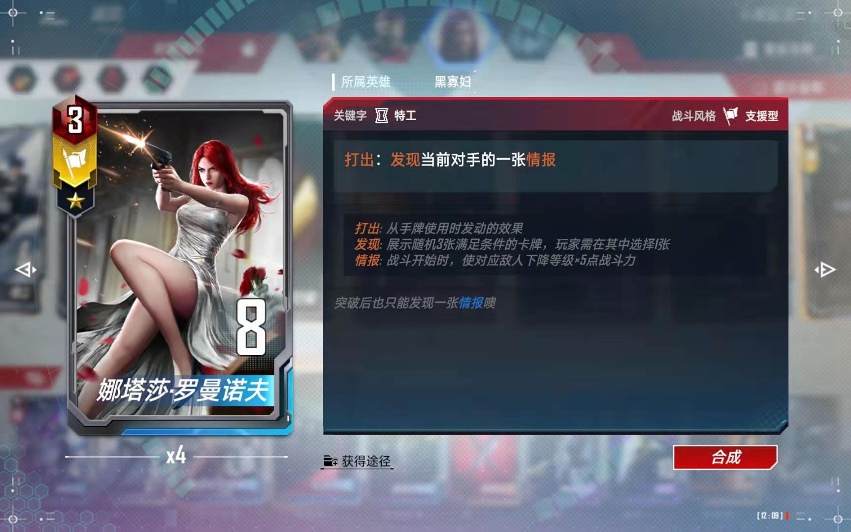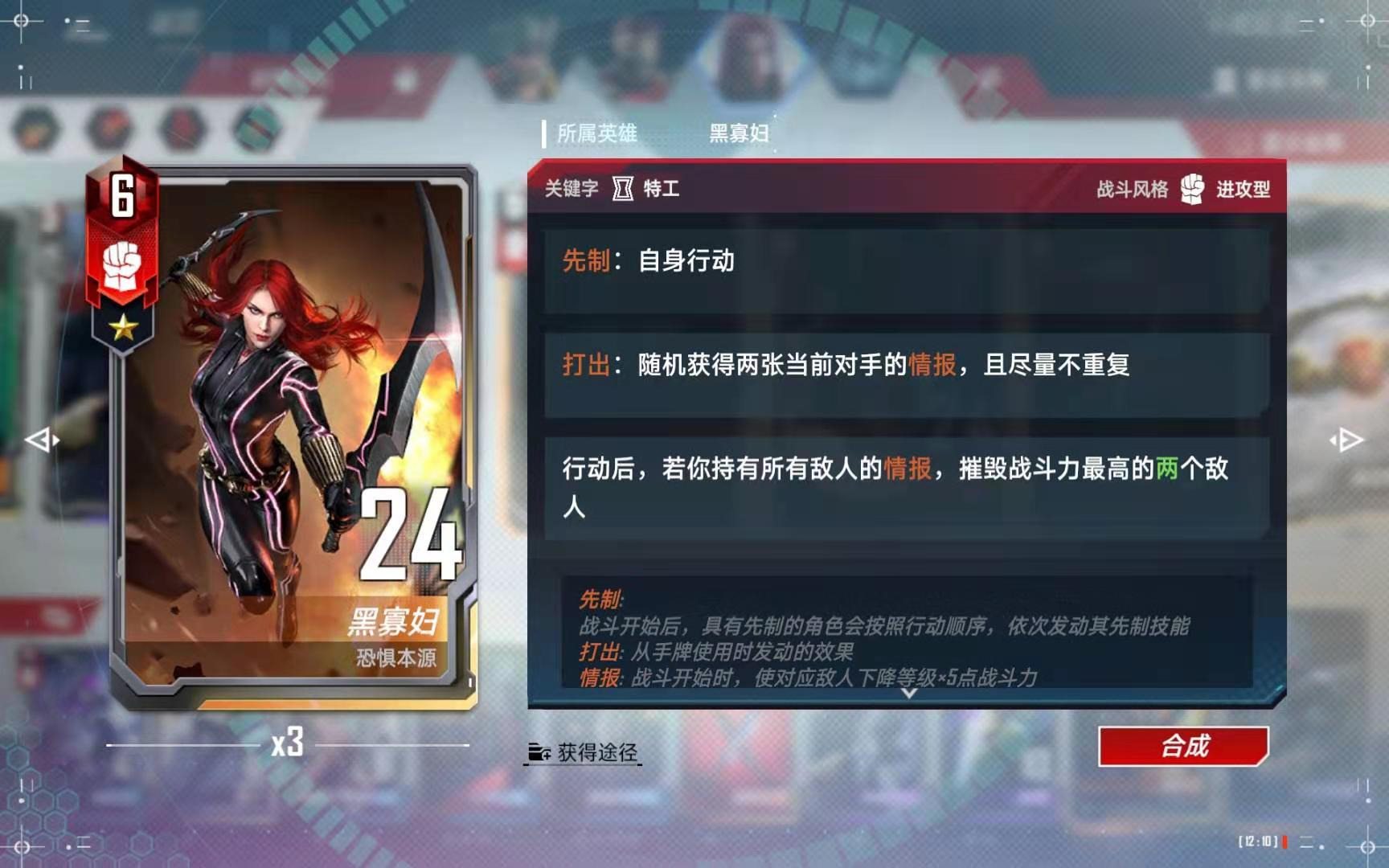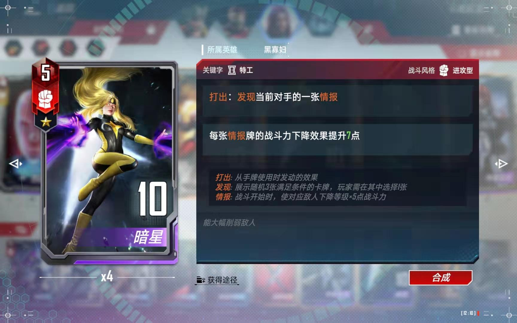 (4)、如果第四回合拿到了“黄蜂女”,则只买下关键牌以后,打出黄蜂女刷新一次商店,运气好的话,还可能拿到美队等关键卡牌。