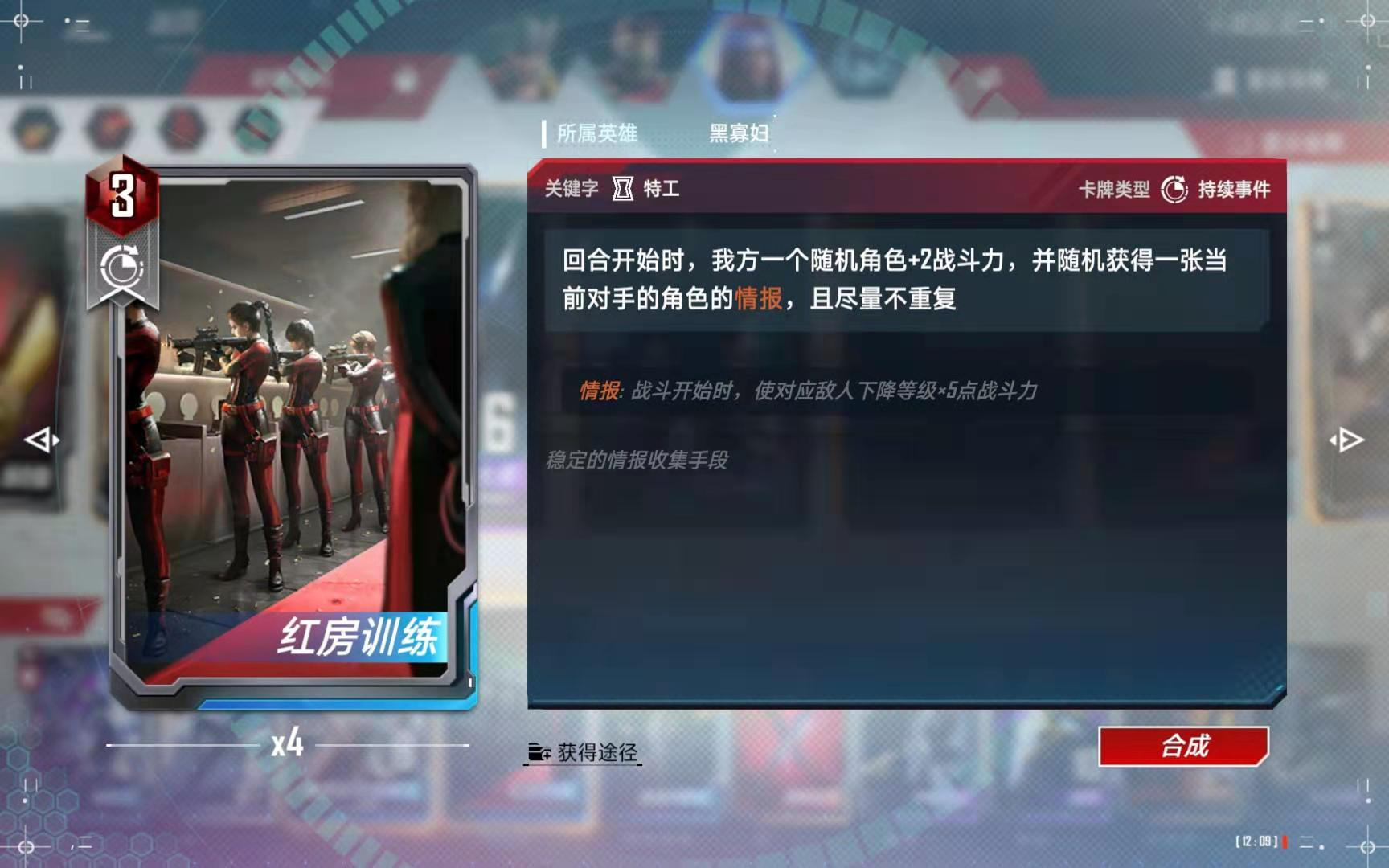 (2)、红房训练带三张,要配合大白腿等其他情报技能使用;