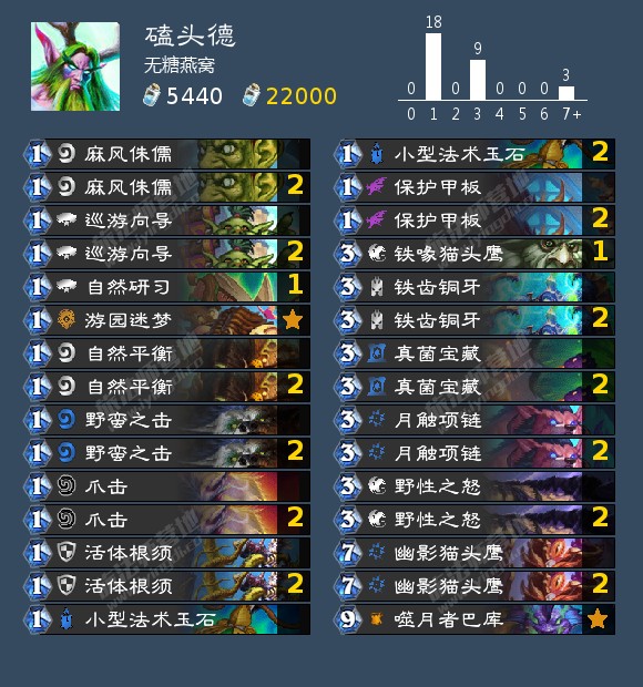 要注意:这套牌补牌手段稀少,只有真菌宝藏与自然研习,一张自然研习只是添加几分梦想,而3费真菌宝藏对于快攻来说在5费之前基本是用不到了,所以基本就是抽一打一,所幸奇数体系下技能足以完成任务一半,二阶段还抽一张牌,所以压力并不是很大。