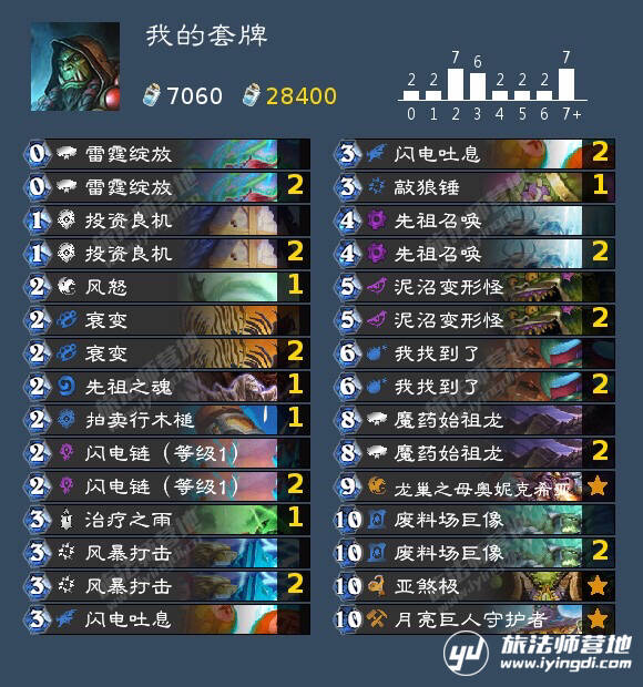 我从5级6个小时53%胜率打上传说,中间碰到的任务术不是很多,反而一堆针对术士的快攻,而且任务术开始带些诅咒之类的莫名其妙的牌。打海盗战胜率挺高的,我每次都能打出闪电吐息的效果把对面场解了。打任务猎感觉不好打,主要还是看自己糊不糊。核心单卡如下,剩下的17张卡位可以针对环境自己调(注意不要带过载牌,雷霆绽放必须稳定检索上手,另外要保证卡组里塞有5-7个大哥,最好是有7个大哥)。