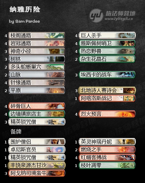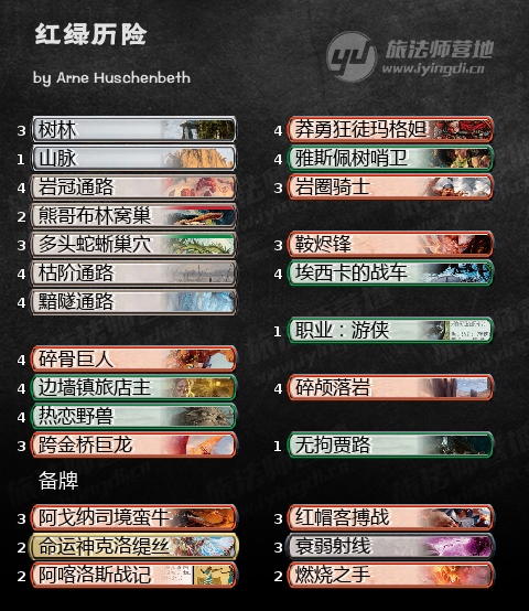 这个控制的组法很克生物套牌,尤其是使用了大量1防生物的历险,这点我在昨天的战报中说过了。