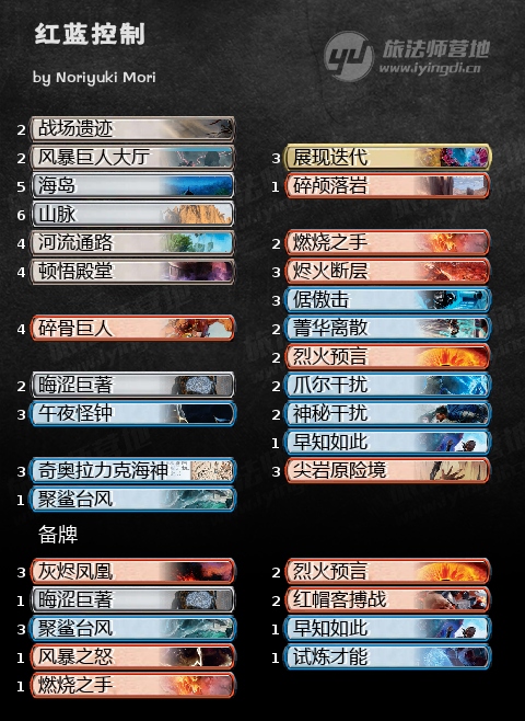 而操控红蓝控制的Noriyuki Mori则因为他的出彩构筑而大获全胜,奇奥拉力克海神在面对生物套牌就是实打实的结算制胜,出场回合造出一个巨大且无法去除的阻挡者稳住,下回合全横对手打8点,第三章直接抢一个埃西卡的战车开始复制辟邪的8/8巨兽,这样的操作他在三天内做了不下五次。