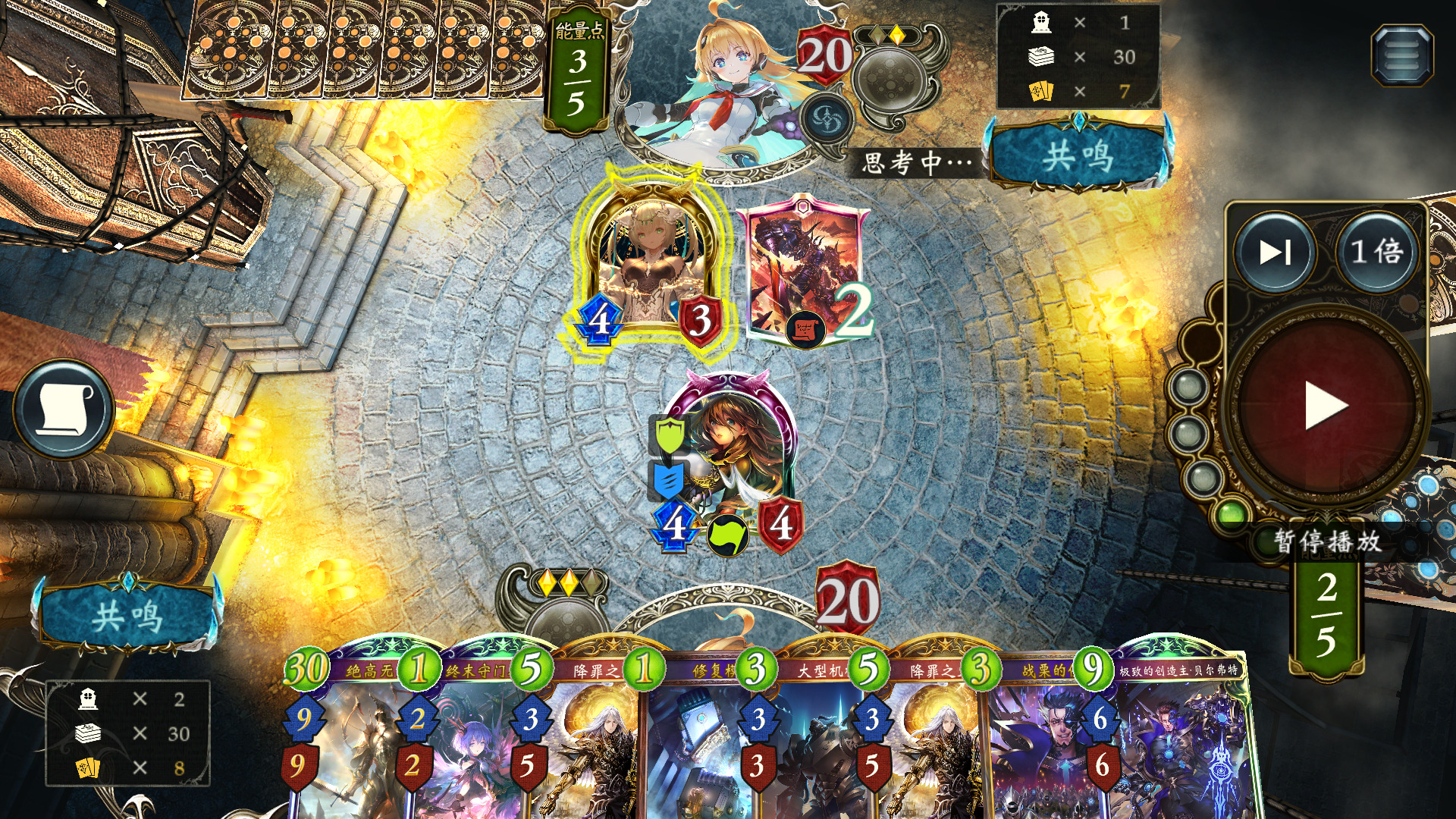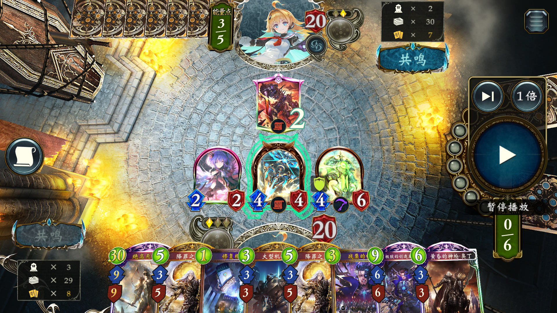 城主是6c强力节奏点,而且灵活多变。在对手场面空虚的情况下 选择 迅袭的创造物和御守的创造物组合。用小蓝进化打脸,小绿铺场守护。可以给到对手非常大的场面压力。