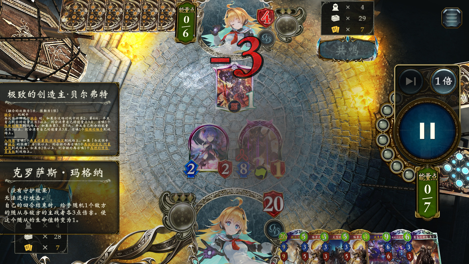- 后手理想情况:3c克罗萨斯结晶 4c雷米尔跳6c 出城主 7c克罗萨斯本体进化。8c单宽容+蹂躏的触手斩杀。