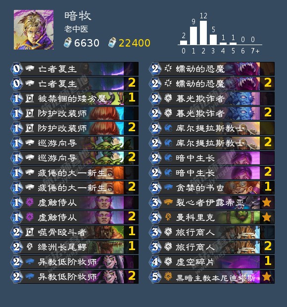 老中医昨晚使用这套牧师打出21-10的战绩(68%胜率),最高打到传说32名。关于暗牧这个卡组可以看一下我下午发的文章,我自认为写的已经很详细了