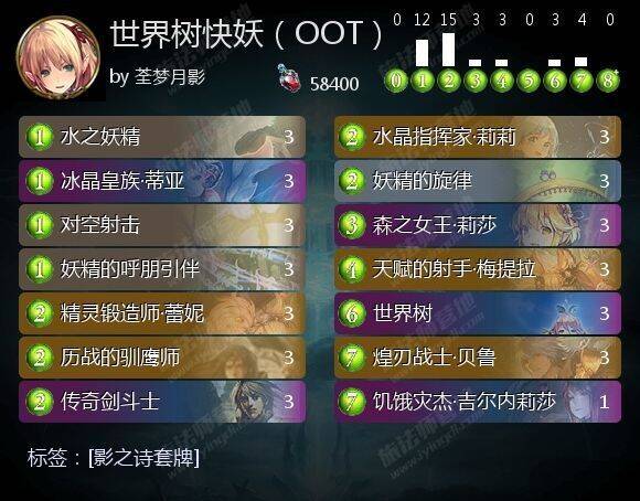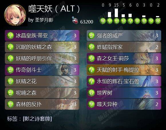 思路类型:核心概念较强的组合技思路,本质为节奏妖,但拥有了通过世界树的token为诸如传奇剑斗士、冰晶皇族·蒂亚产生的1C44token、经过减费的煌刃战士·贝鲁等卡片疾驰、并结合旋律、饥饿灾杰·吉尔内莉莎等铺场buff进行组合技爆发乃至OTK的路线。
