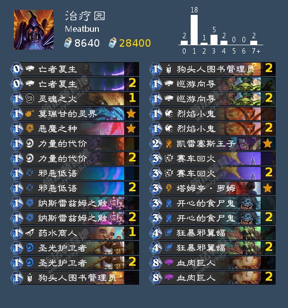 起手留牌方面,农夫>虚触侍从>麻风侏儒>暗影投弹手,巡游向导在后手(可以点掉对面的怪)或者手里有暮光欺诈者的情况下可以留取,三费以上的牌和心灵震爆均不留。