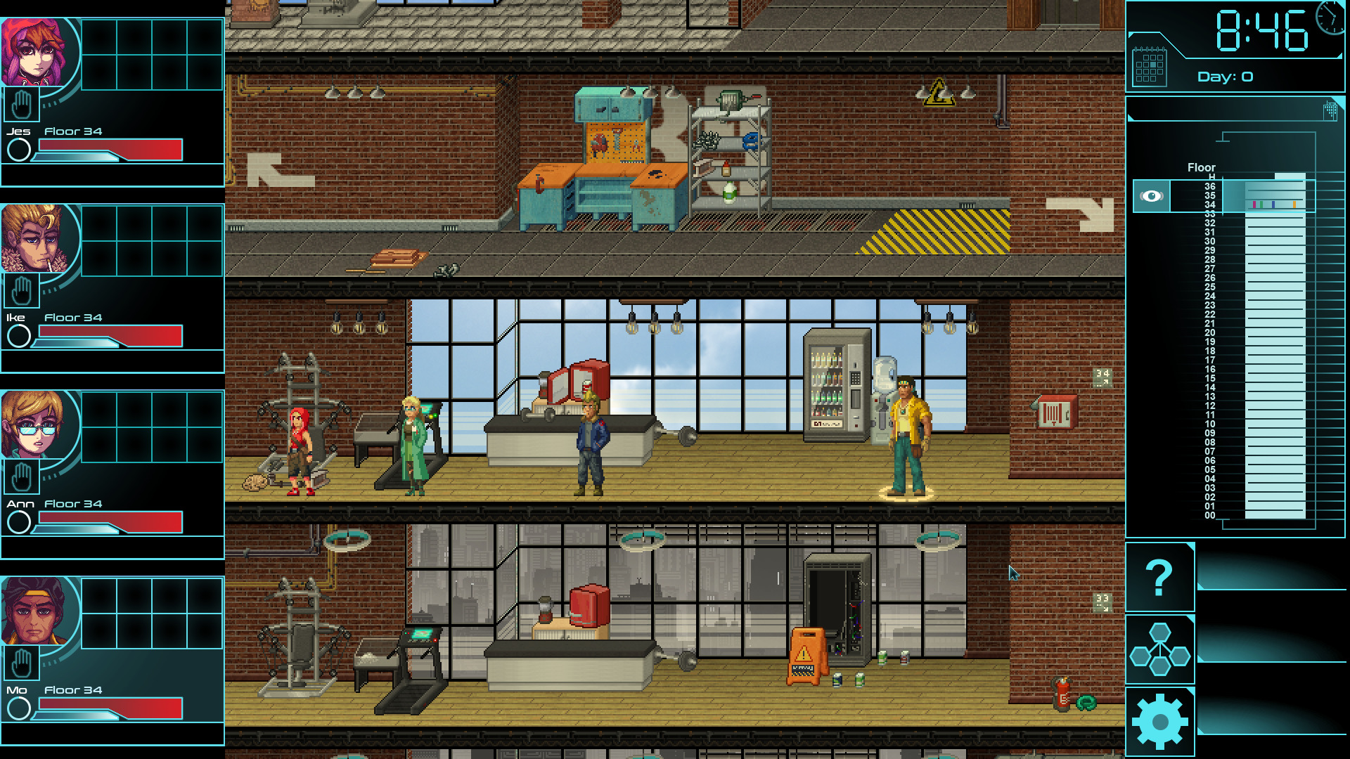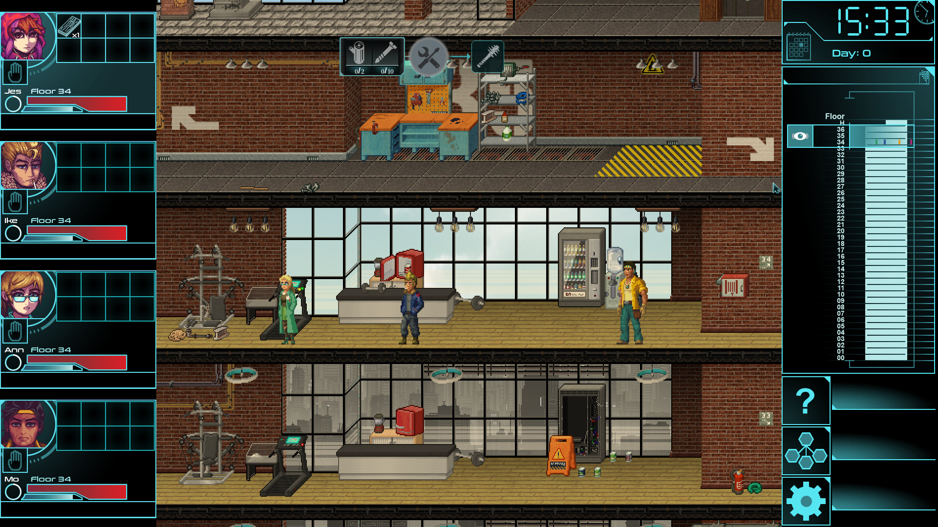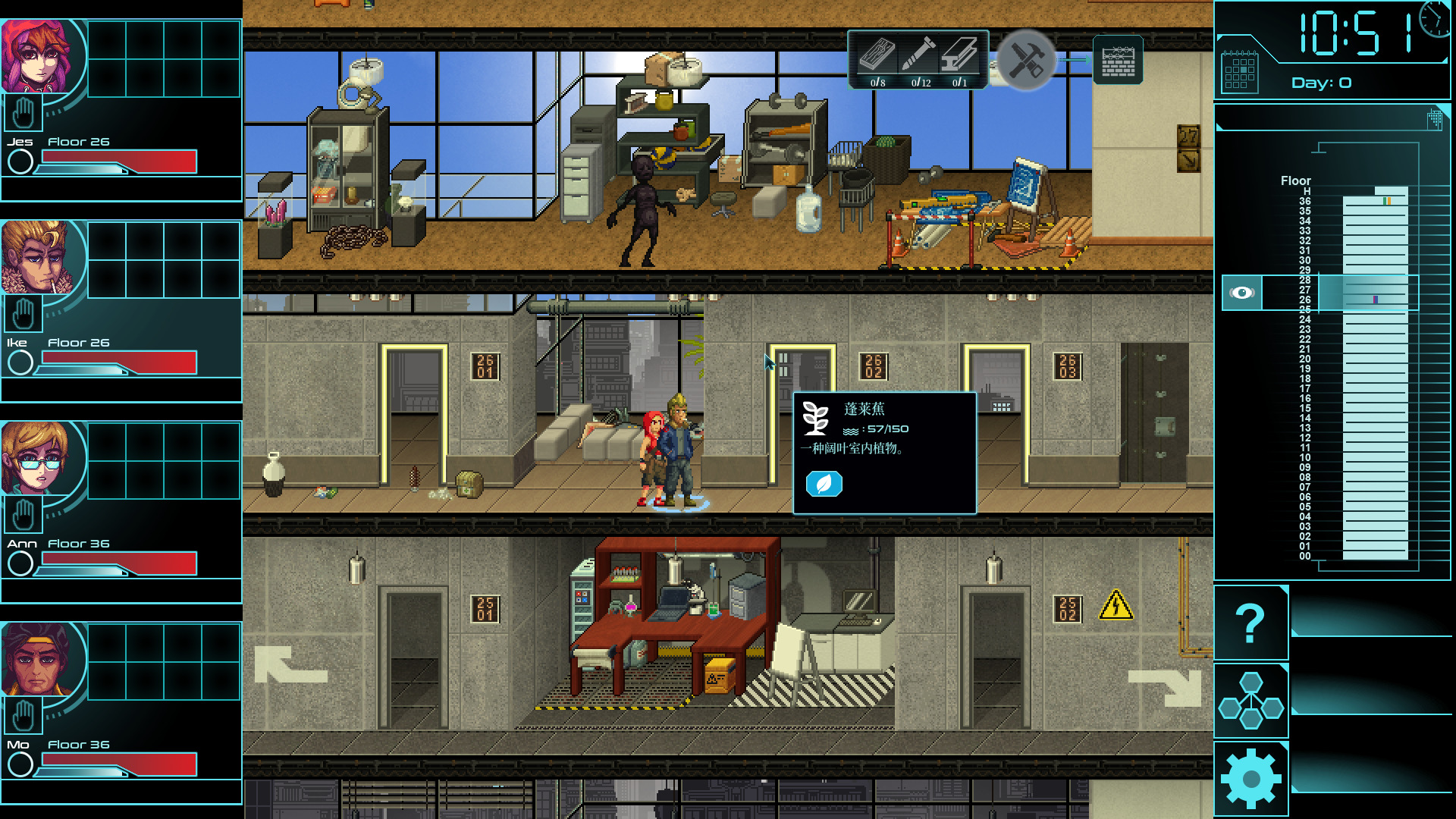 游戏的优点很多,比如有36层大楼,每一个层都有不同物品,不存在完全一样的楼层,这可以看出作者在这方面并不偷懒,而且面对同一个物品能做的决定也不少,比如面对一个跑步机,你既可以选择你的角色是去锻炼还是拆卸它寻找有用的材料。
