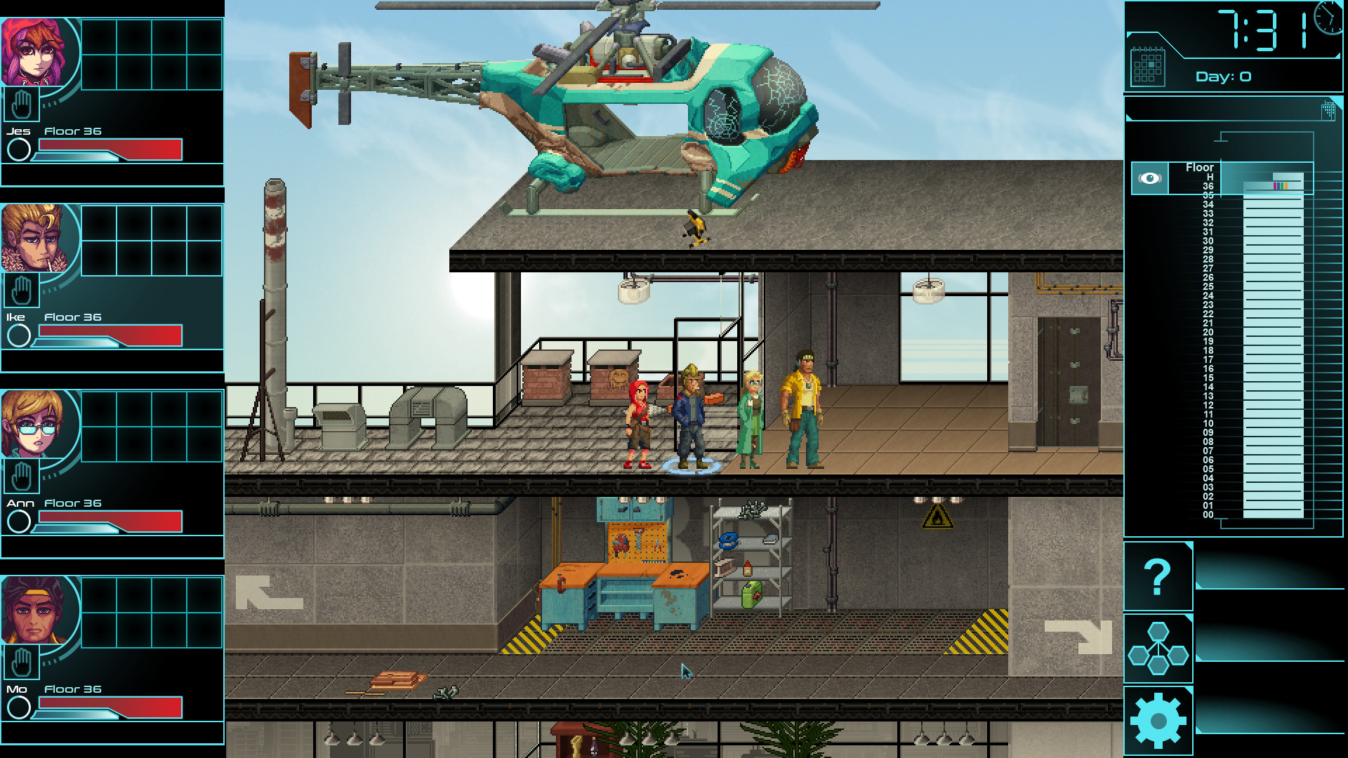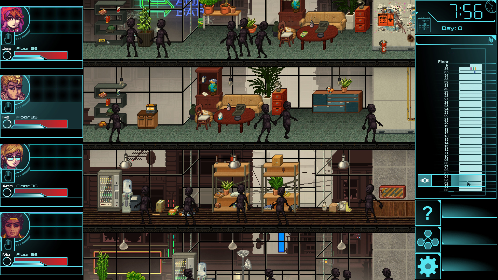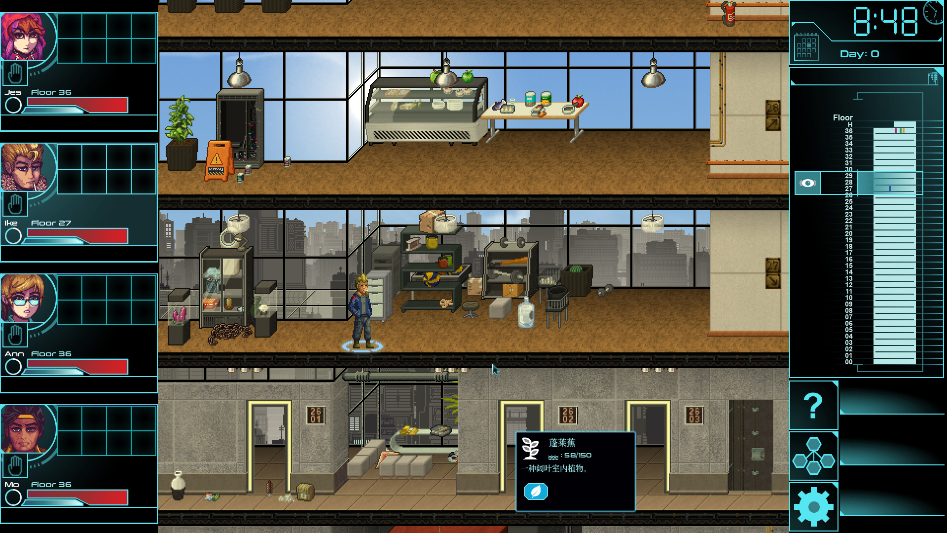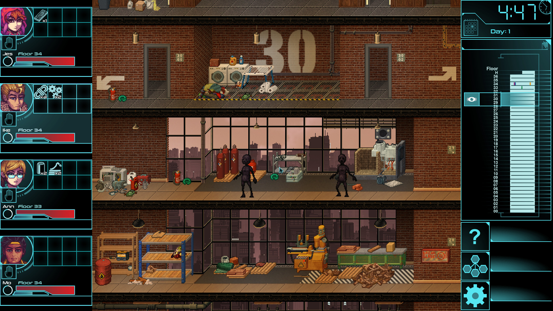 游戏的优点很多,比如有36层大楼,每一个层都有不同物品,不存在完全一样的楼层,这可以看出作者在这方面并不偷懒,而且面对同一个物品能做的决定也不少,比如面对一个跑步机,你既可以选择你的角色是去锻炼还是拆卸它寻找有用的材料。