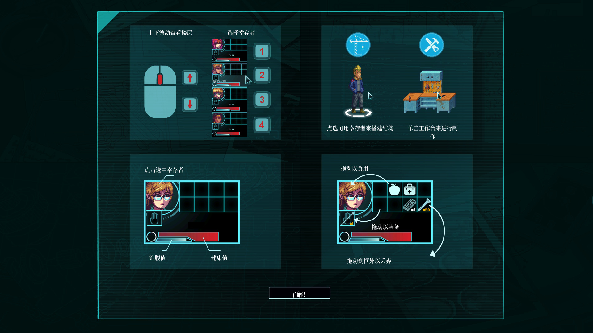 我就不明白了,制作组有没有玩过自己做的游戏?这个游戏目前缺点很明显,但是有很多简单的办法就能解决,比如在命令环节可以暂停时间,这样玩家可以很好地观察环境,尤其是你这个游戏基本没有故事介绍和教程的基础下,鬼知道我们要修好一个直升机?正常怎么想都是坚持XX天等待救援啊。你开头说一下会死啊。