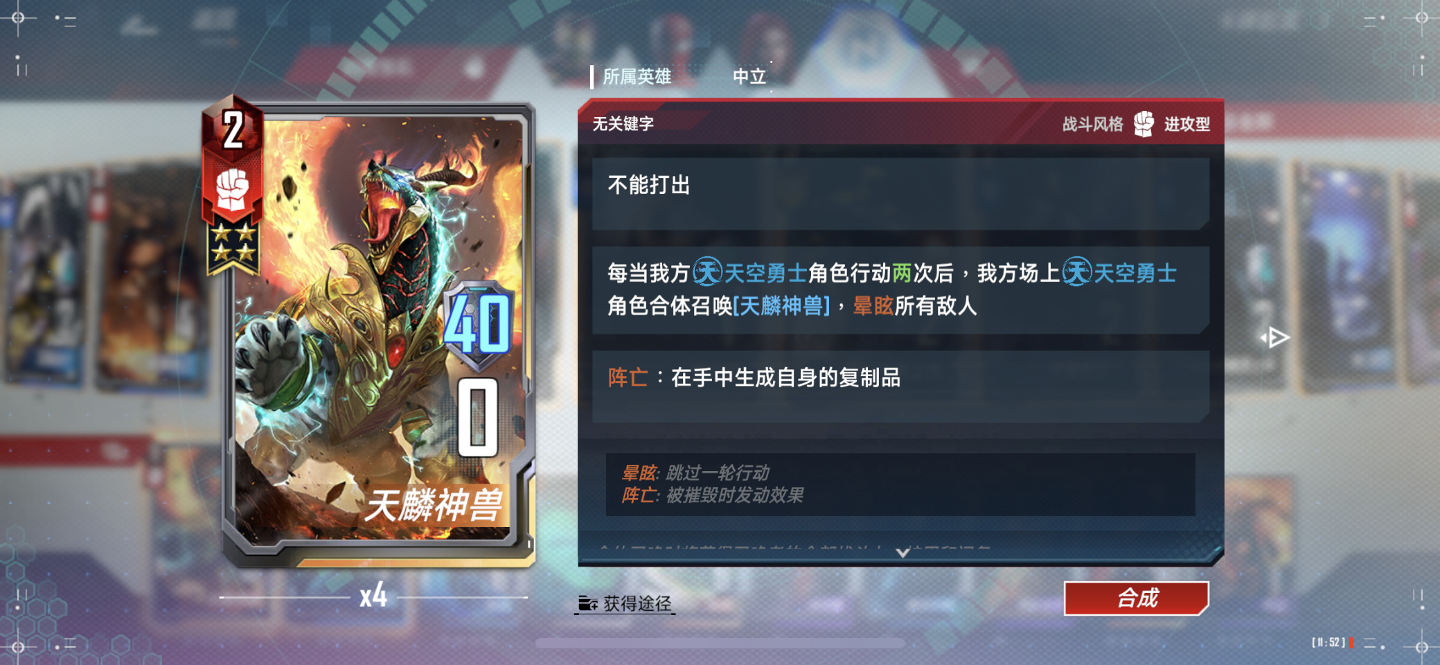 (1)、因为核心卡战虎在4本,战虎能提供额外的天空勇士卡并附加buff中期强度可观,所以本卡组需要卡四本一两个回合;