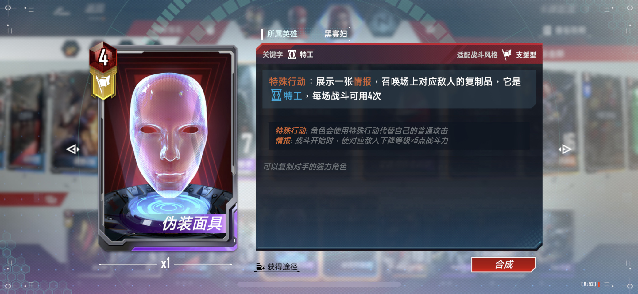 伪装面具是青龙长枪的4本下位替代,防止在前期就遇到多张魔女的尴尬局面,毕竟迷境魔只能挡一次,不推荐携带2费的蜘蛛追踪器。