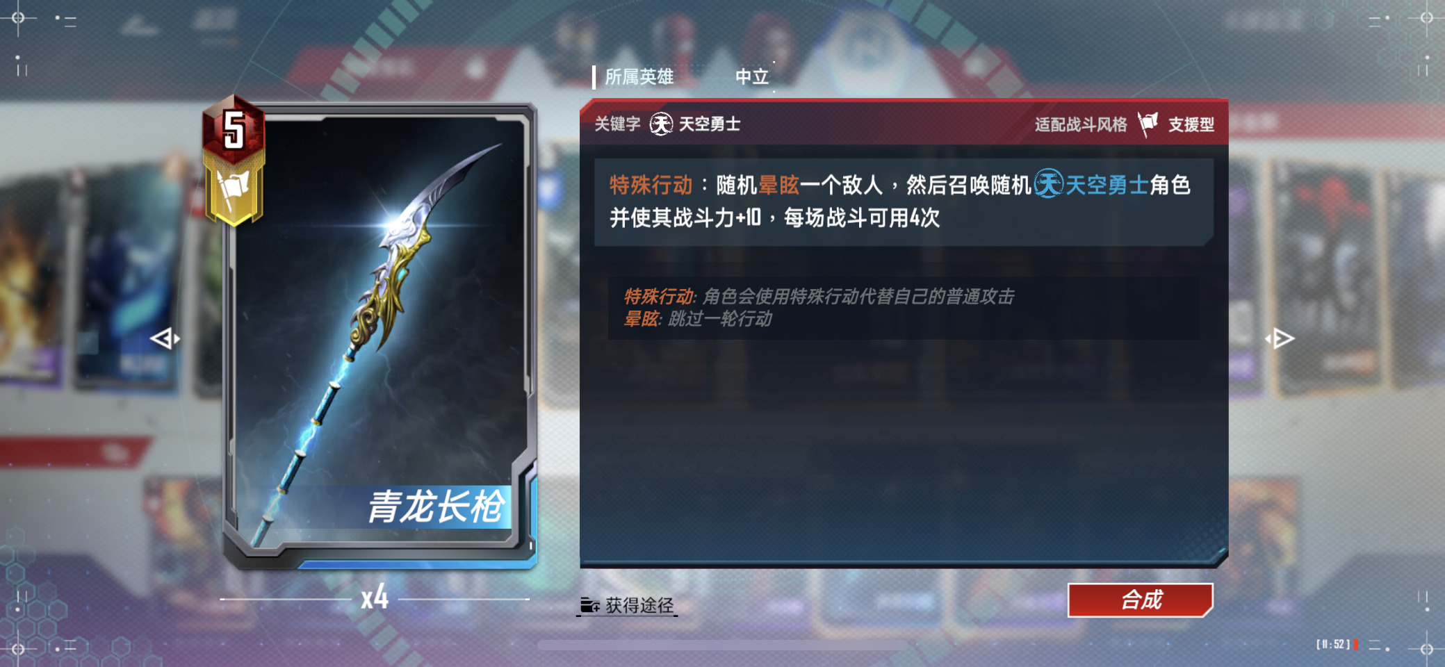 因为天空勇士都是有专属武器的基本上不要给他换了每种都只带一张这里讲2张武器;