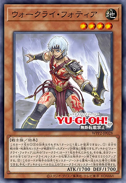 ①:自己的战士族·地属性怪兽进行战斗的伤害计算后才能发动。从卡组把「ウォークライ・フォティア」以外的1张「ウォークライ」卡加入手卡。那之后,自己场上的全部「ウォークライ」怪兽的攻击力直到对方回合结束时上升200。