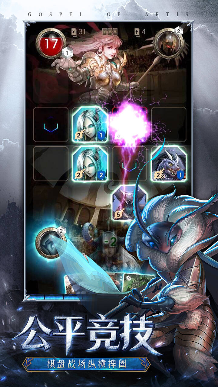 《阿蒂丝契约》与传统TCG卡牌游戏战场布局不同,采用全新棋盘战场,拥有多路战场,常常能打出一些意想不到的操作,策略为王,不按套路出牌,瞬息万变,绝地求生就在下一秒