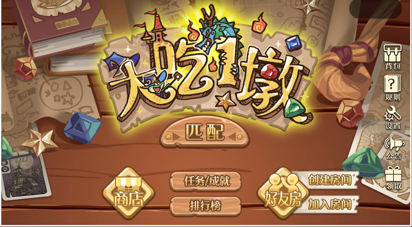 《大吃1墩》是一款以桥牌中“吃墩”为核心机制的电子卡牌游戏,类似于《巫师牌》、《Spades》、《Skull King》和《尤克牌戏》的卡牌游戏,玩家在拿到手牌后需要先预测自己能吃多少墩,在游戏结束后玩家吃到的墩数与他们预测的墩数一致便能获得高分。