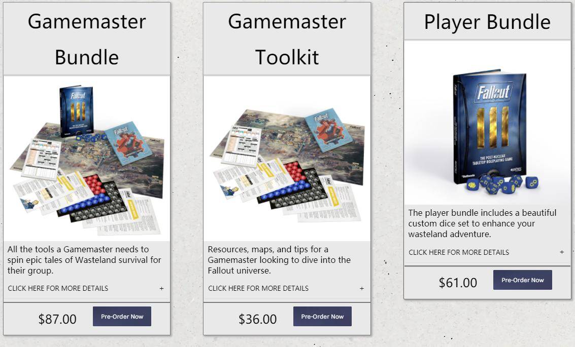 Modiphius介绍道:“创造你自己的幸存者,超级变种人,食尸鬼,甚至是巧手先生机器人,让自己沉浸在标志性的后核末日世界中,游戏大师们将带领他们的团队通过独特的辐射故事。这个2d20版本的辐射是你可以得到的最接近瓶盖交换,荒地漫游,兄弟会战斗的辐射兴奋点。”