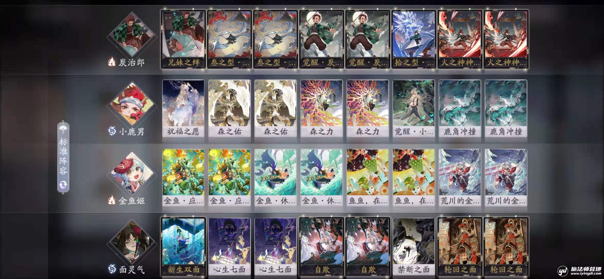 1.首先看对方有几个能解我们后排的式神,一般来说垢尝有2张,小僧有2张,但是无论如何,我们的展开顺序最好都是金鱼姬挂化身——面灵气挂轮回之面——金鱼姬挂荒川的金鱼姬,然后小鹿男负责开buff保护后排式神。火之神神乐是我们后期的过墙手段,一定要留,如果没有摸到要去找,否则面对一个20多血带不屈的源九郎狐真的没法过墙。