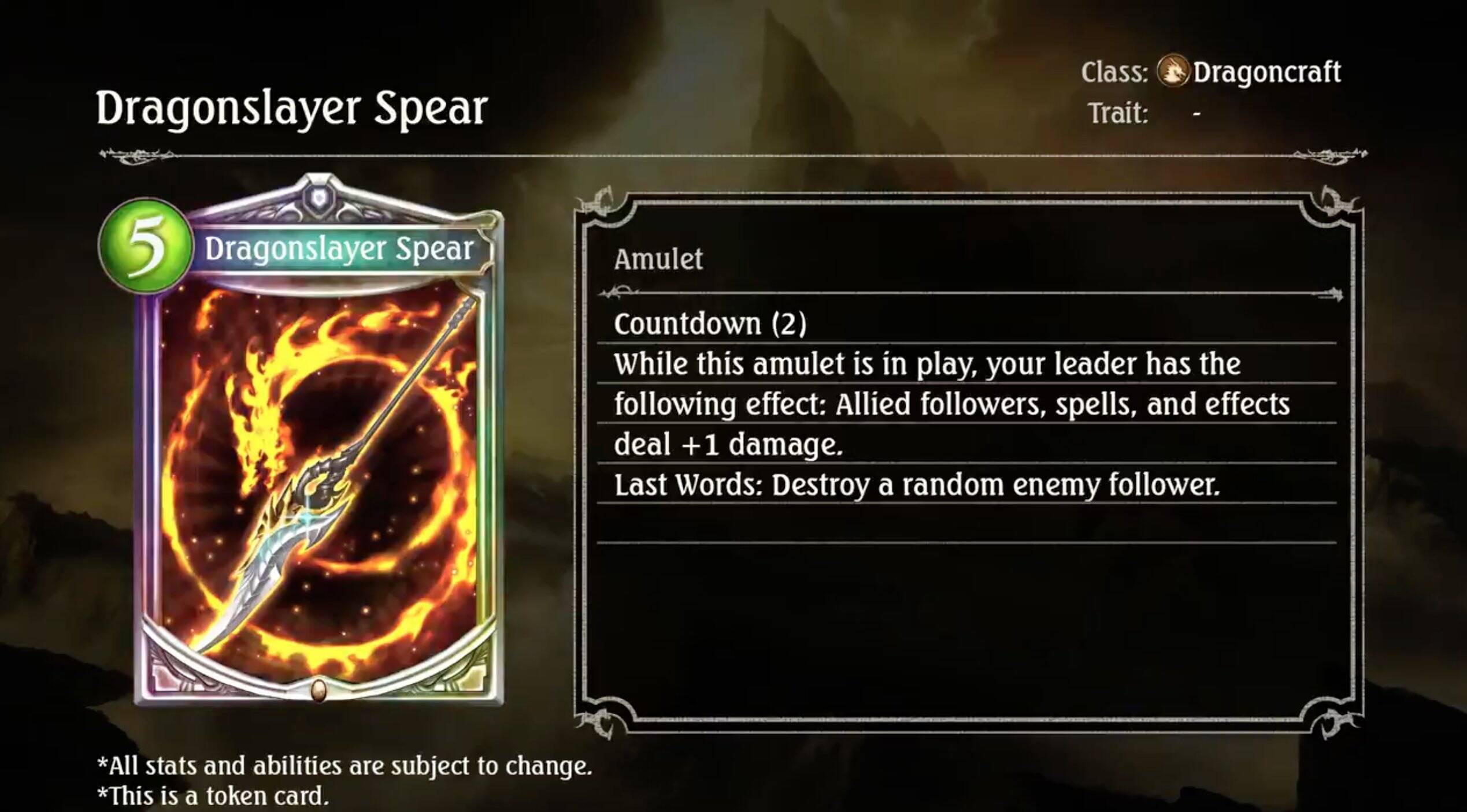 仅在该护符在场上时,给予自己的主战者“自己的所有随从、法术和卡牌的效果造成的伤害+1”的能力。