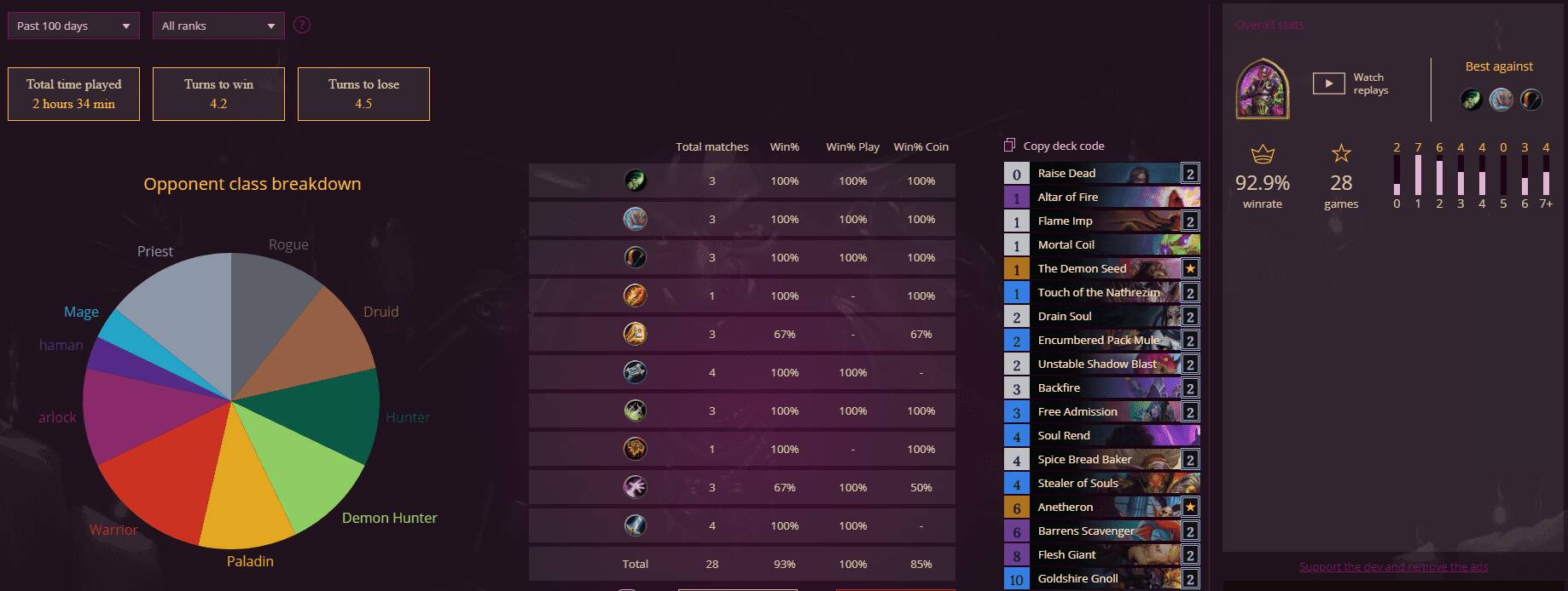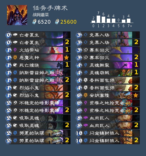 大家好,我是战网最菜#5142,由于新版本任务看起来好玩(氪了一年多以来第一次金,顺便开出了术士任务)就打算玩玩标准!正是由于有任务术这样不仅不吃疲劳,还让你大吃一斤的卡组存在,导致了极限控制卡组的绝迹。其实任务法也差不多,懂得都懂。既然本文是术士卡组,我就嗯吹一下术士哈哈哈。首先声明本文的目的主要是抛砖引玉,并不是说此卡组有多强或者本人有多强。毕竟很久没玩标准的我从6星开打,直到连胜终结也还是在钻4左右而已。分段较低,与其他文章传说前百那自然是无法同日而语了。不过话虽如此,本人操作的任务术打出了惊人的28连胜,其强度也确实值得肯定。由于人在海外用不了盒子查战绩,就只能用Firestone凑合一下了,传图也是相当困难啊:(