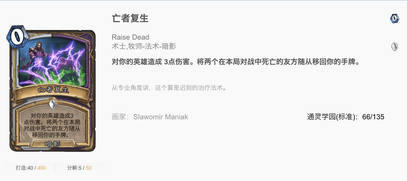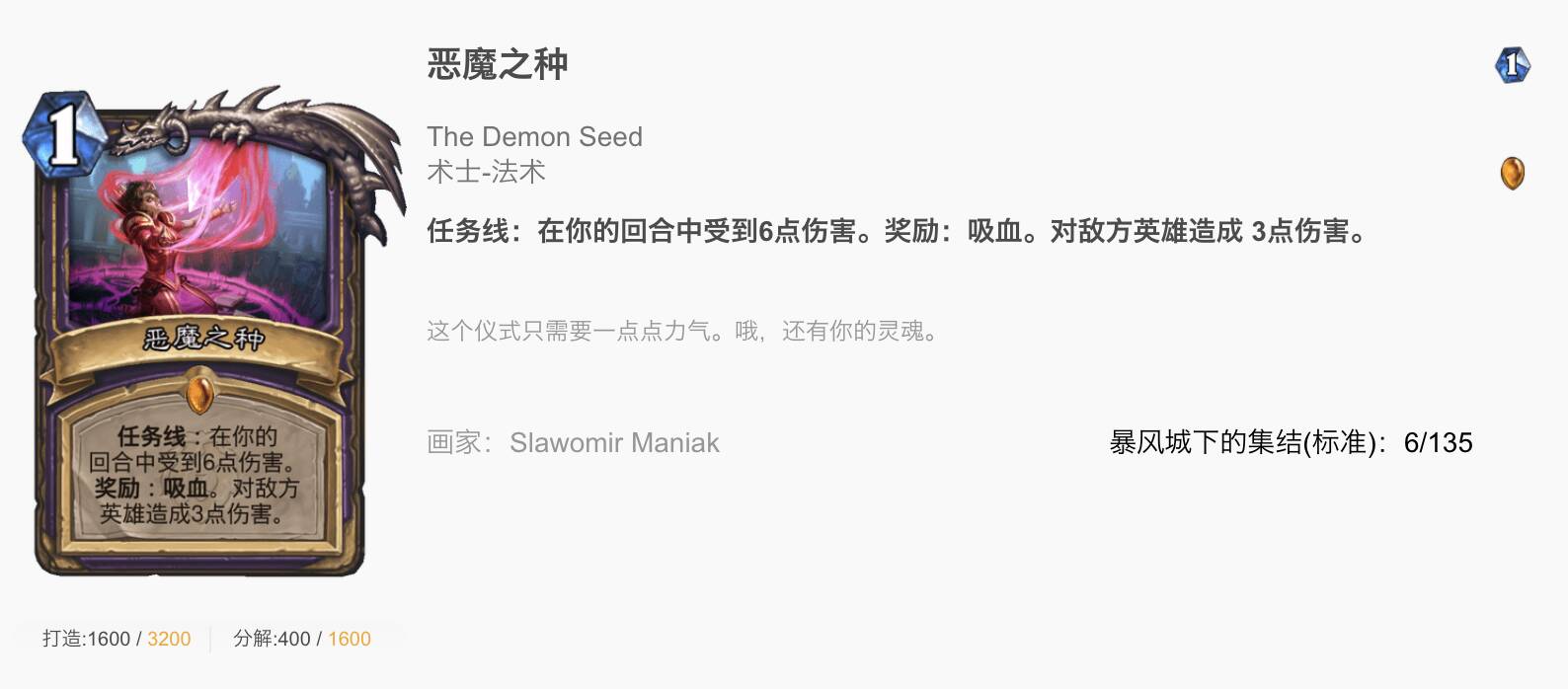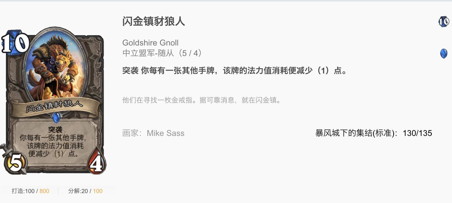 免票入场:虽然本卡组没什么恶魔,但3费过2稳定抽随从,比奥数愚蠢要厉害的多,且3费抽上来闪金镇豺狼人和安纳塞隆都是非常好的机会。