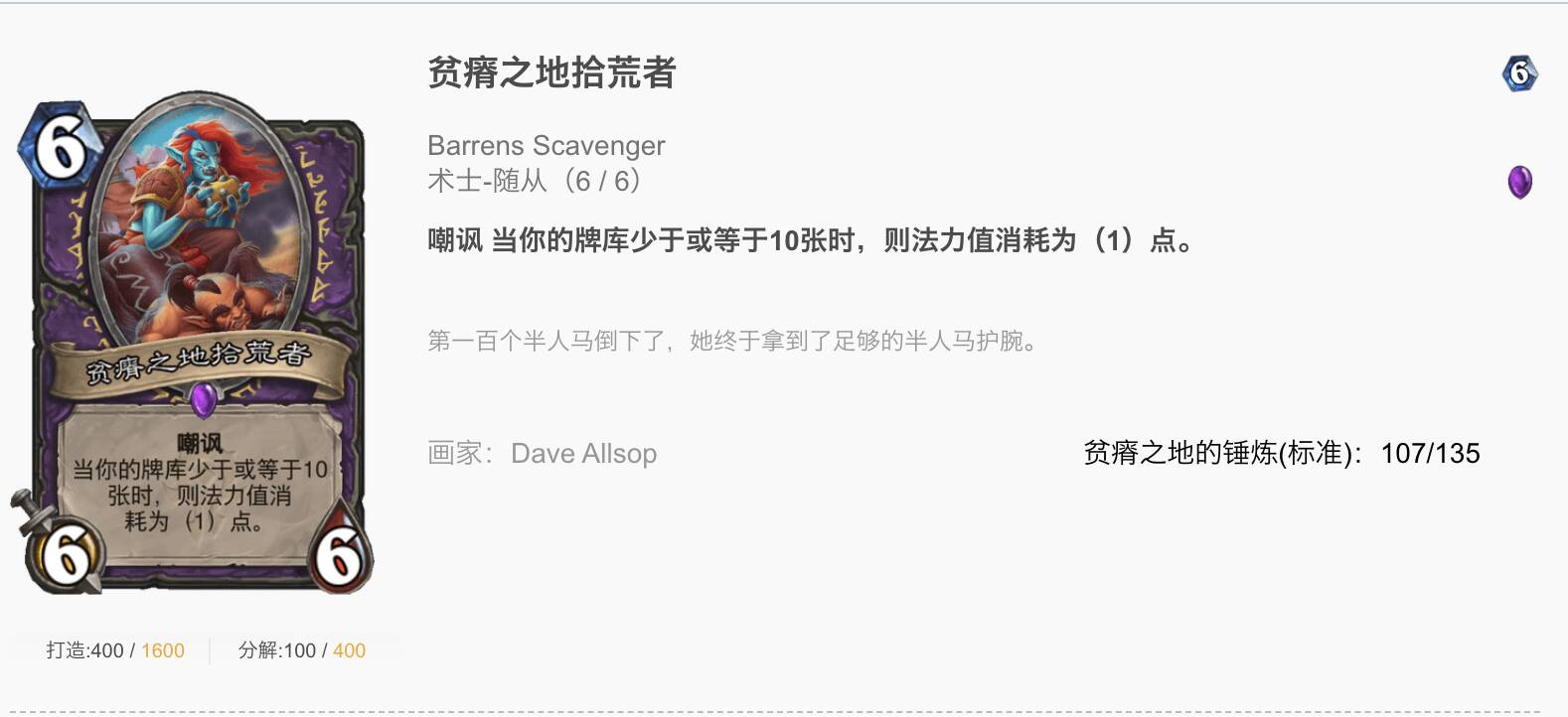 其实说是撕牌,实际上是为了过牌。由于我们的第二制胜手段是任务,而这套牌做完任务并没有很多自残手段来斩杀对手,那么越早过穿牌库便越能斩杀对手。此外,加入了贫瘠之地拾荒者用来作为站场,嘲讽的低费手段,撕牌也非常重要。