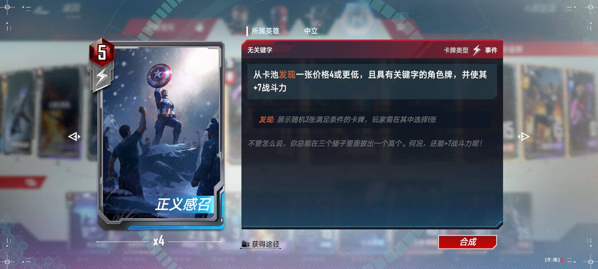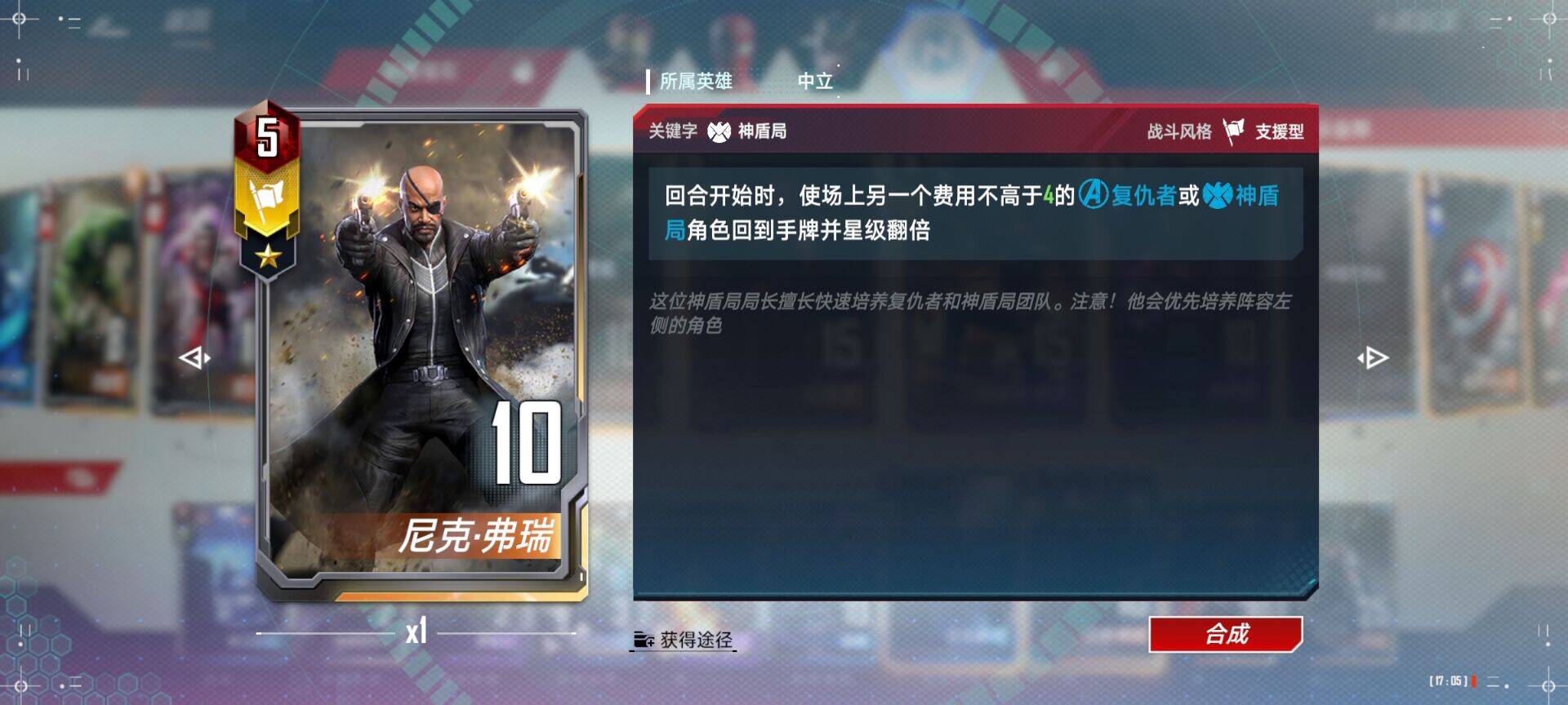 全卡组唯一橙卡,卡组后期绝对核心,用来给其他低费复仇者和神盾局角色翻星