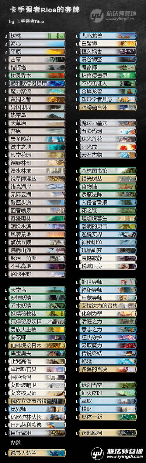 先看主将,自身就是一个抓牌引擎,每当释放生物咒语时可以抓1下个地,这时就可以想到玩弹弹人思路了,楚兰的色组也十分精妙,班特GWU,有康有兽有stax,可是要到5费,看异能决定用生物加速,2/4的身材也还不错。