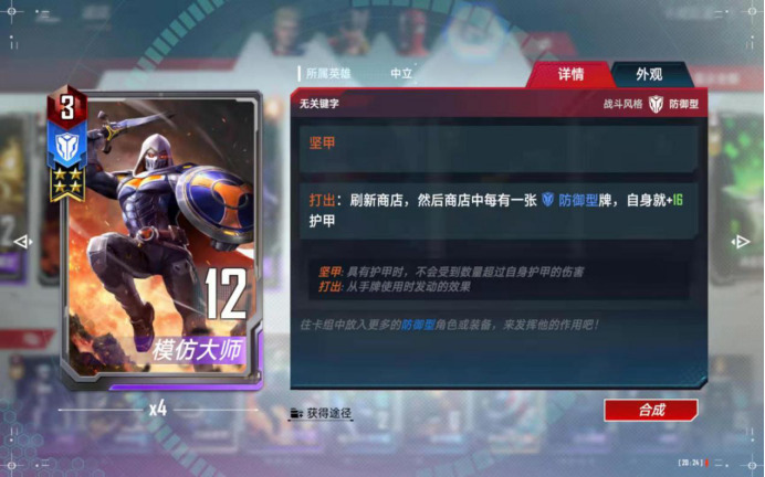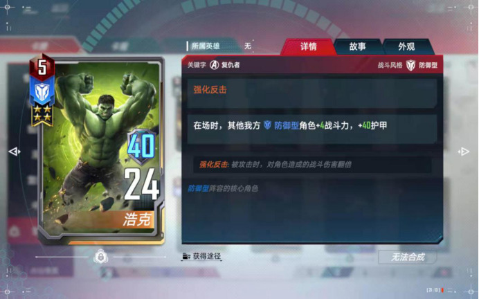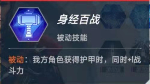 这个技能的+1战斗力包含两种:一种是永久增加,比如绿浩克入场的时候,又比如使用“仙宫军势”的时候,这种是永久增加的;另一种是临时增加护甲,比如仙宫战斗内触发增加护甲的各种技能的时候,这种战斗结束的时候,增加的攻击力会消失。在本卡组中,是仅次于经济技能的最强的技能之一。