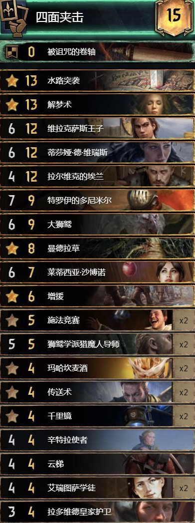 最后一套就是娱乐狮鹫北。可以看出,这是一套四平八稳的整活卡组,然而当一个整活卡组为大多数人所熟知的时候,它的寿命也就到头了。当然,等将来北方得到加强,四面夹击形态趋于复杂的时候,说不定就是狮鹫北的复活之日。