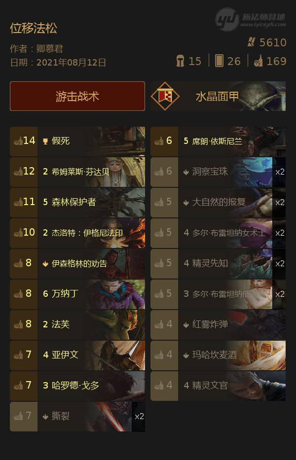 洞察宝珠:整套卡组的核心,可与多张卡进行配合。通常情况下由岳父打出。一定注意其在墓地的倒数,不要在倒数1时空场打出法术;