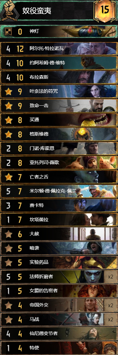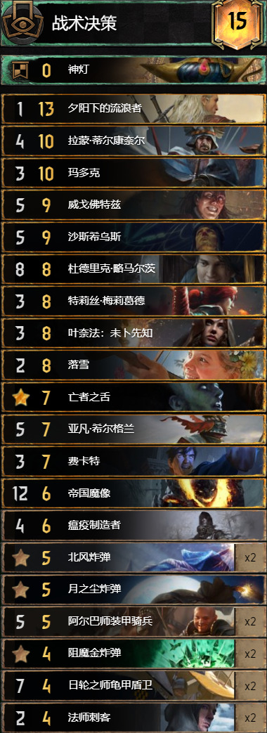 本赛季更新后,其他阵营都有较为强力的新卡加入,而北方的新卡体系则不那么能融入当前环境,故为大家带来两套老卡组以及预选赛的蓝衣卡组和娱乐养鸟卡组。