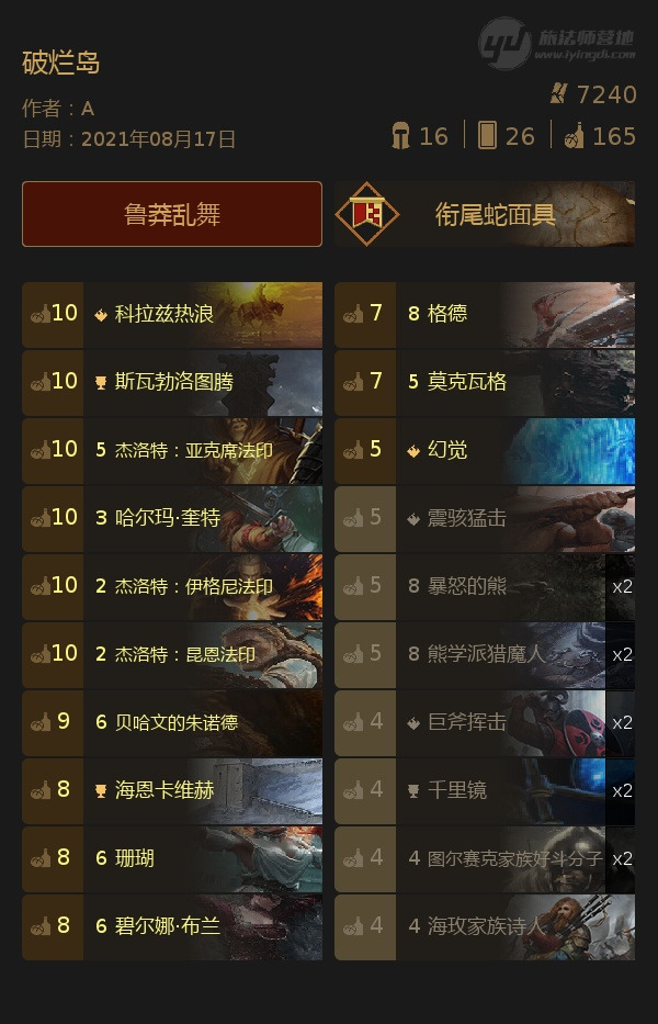 历变可以换成大法师,提高一下自身点数上限,尤其适合摸不到决斗的朋友们。