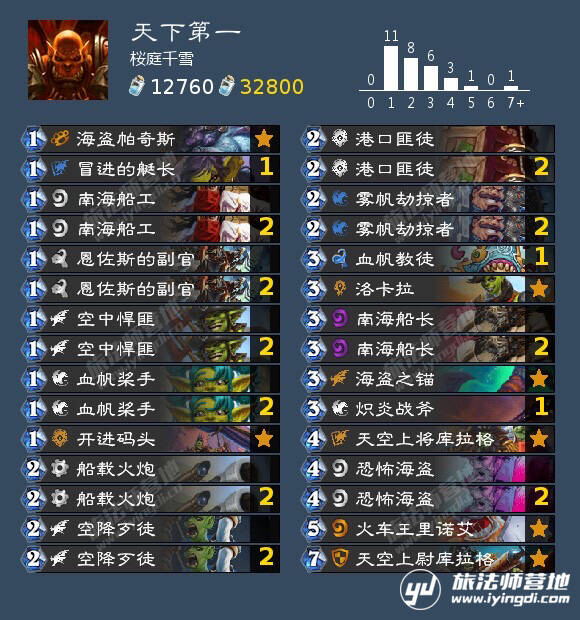 三刀四炮流时期的荣耀,5血的身材让对方略感难受,每个海盗都能冲锋打2简直就是梦想!!可惜,在这个赛马场,3费也让我们难受,权衡之下还是只带了223的小炮。